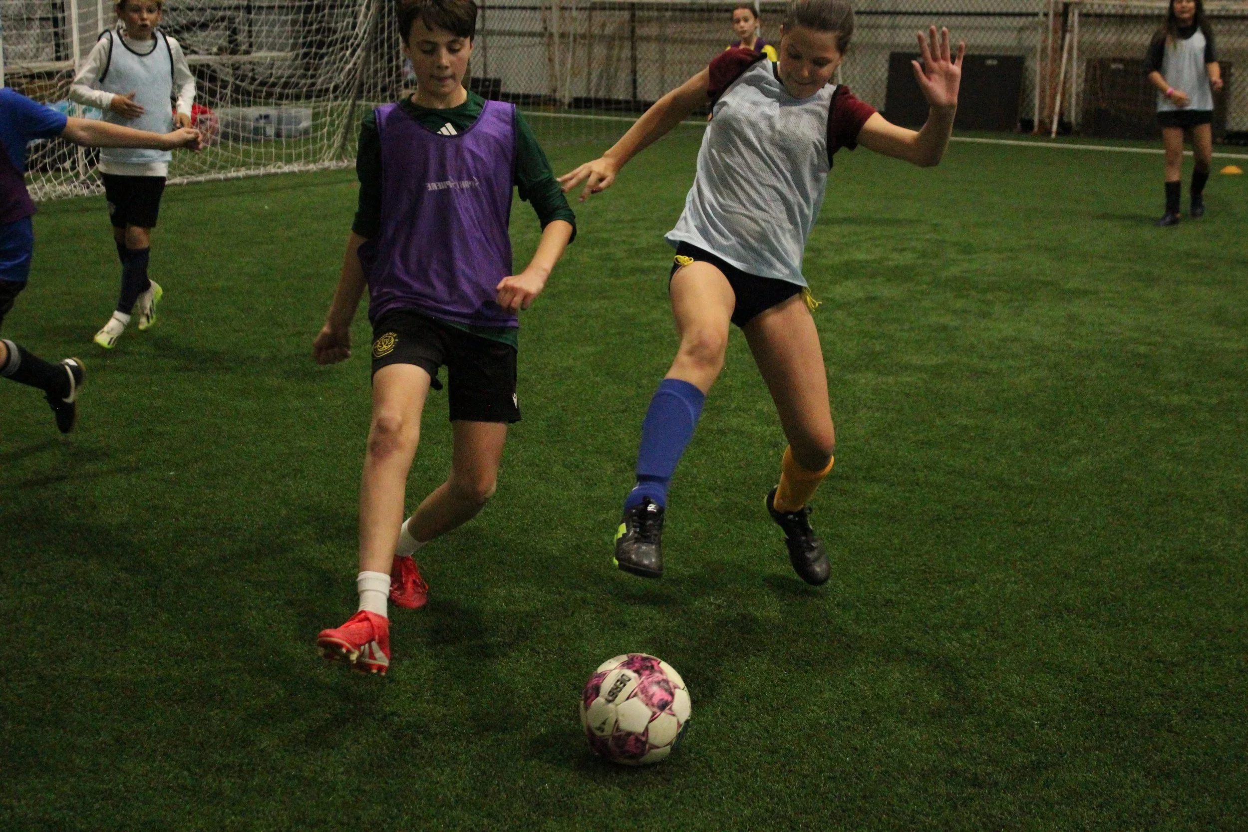 The camp challenges players on technical and tactical abilities through game-based curriculum following the learning principle of Repetition without Repetition.